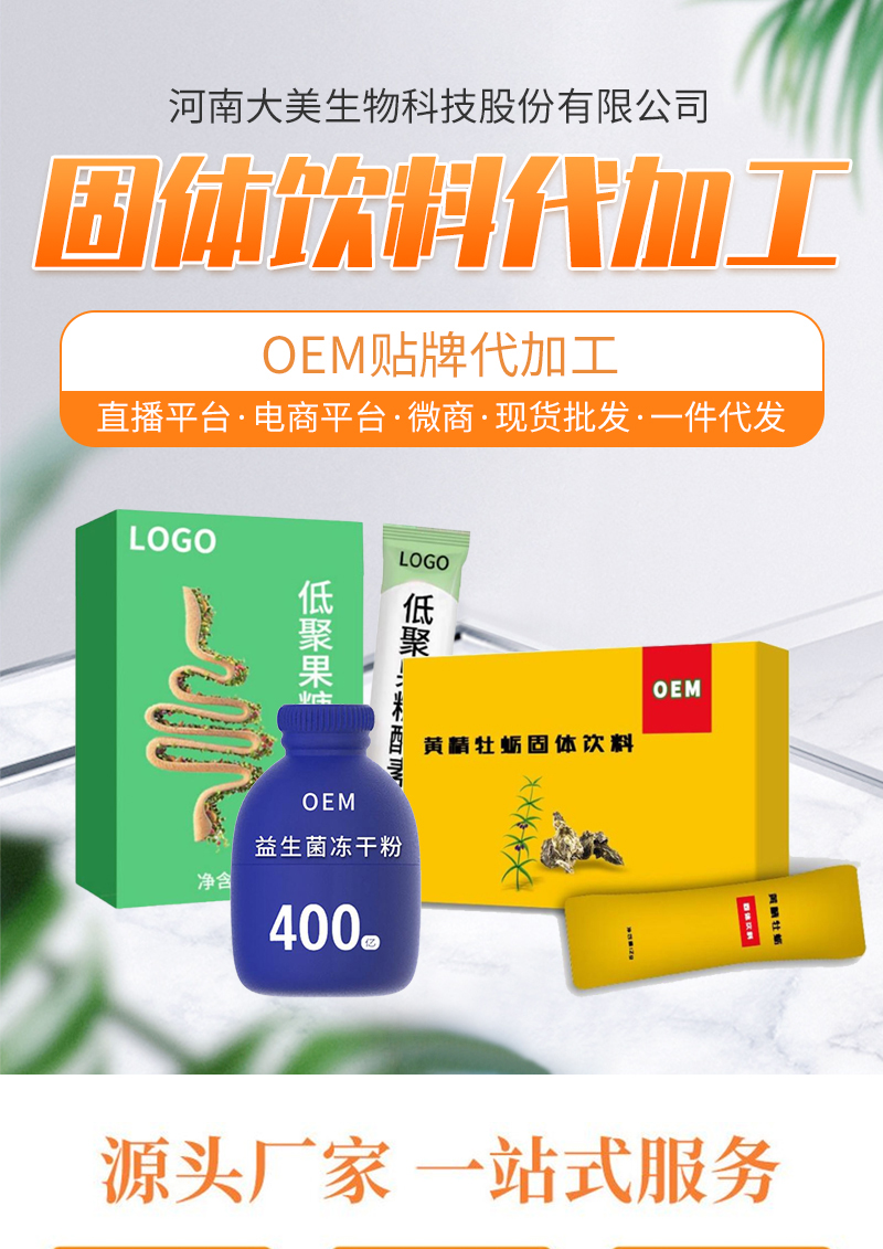 河南大美生物科技股份有限公司專注于固體飲料、壓片糖果、代用茶、口服液、SC食品、特膳食品的科研、生產(chǎn)、銷售。公司生產(chǎn)研發(fā)設(shè)施設(shè)備完善,現(xiàn)擁有凈化車間標(biāo)準(zhǔn)廠房7000平方,廠區(qū)擁有SC食品生產(chǎn)線、代用茶生產(chǎn)線、固體飲料生產(chǎn)線、軟糖生產(chǎn)線。公司研制開(kāi)發(fā)了土黃金、雪里謎、伯格益美等十個(gè)600多種產(chǎn)品.