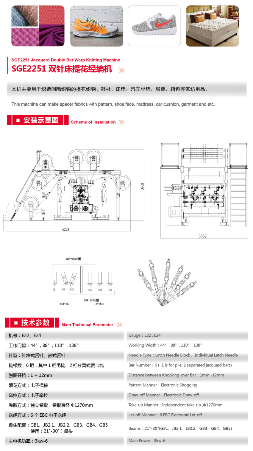 SGE2251双针床提花经编机